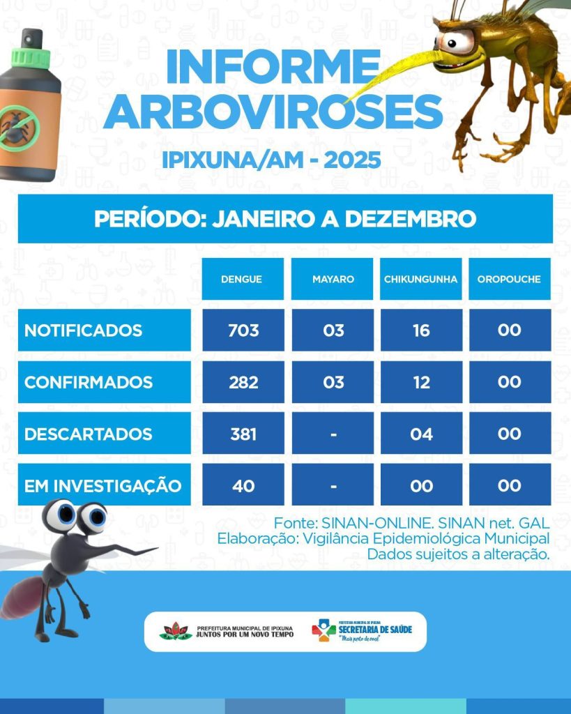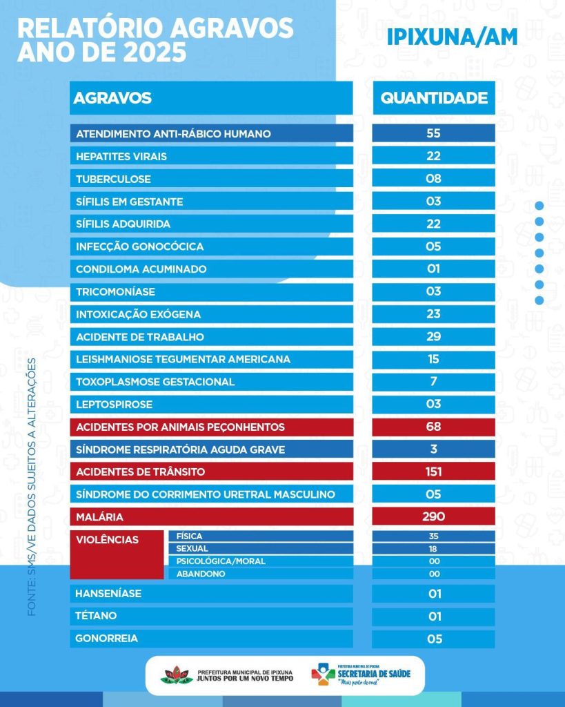 Agravos notificados no município de Ipixuna no ano de 2025